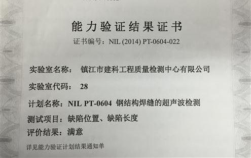 由檢測(cè)三科承擔(dān)CNAS認(rèn)可的能力驗(yàn)證項(xiàng)目“NIL PT-0604鋼結(jié)構(gòu)焊縫的超聲波檢測(cè)”順利獲得通過,測(cè)試項(xiàng)目包括缺陷位置和缺陷長(zhǎng)度,評(píng)價(jià)結(jié)果均為滿意。通過參加此次能力驗(yàn)證活動(dòng),大大提高了我中心檢測(cè)人員在該領(lǐng)域的檢測(cè)技術(shù)水平和對(duì)標(biāo)準(zhǔn)規(guī)范的理解認(rèn)知。此次能力驗(yàn)證順利通過是對(duì)中心在該領(lǐng)域檢測(cè)技術(shù)能力的充分肯定。今后,中心將積極參加此類能力認(rèn)證活動(dòng),不斷提高各領(lǐng)域檢測(cè)能力,為社會(huì)提供更優(yōu)質(zhì)的檢測(cè)服務(wù)。 |