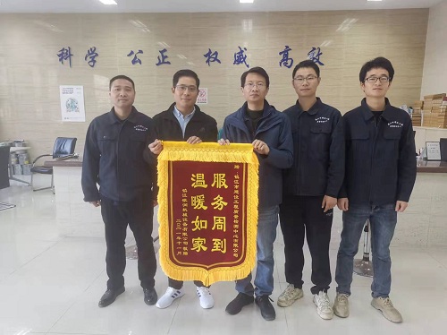 近日,鎮(zhèn)江徽潤機械設(shè)備有限公司負(fù)責(zé)人王友良總經(jīng)理將一面寫有“服務(wù)周到,溫暖如家”的錦旗送到了鎮(zhèn)江市建設(shè)工程質(zhì)量檢測中心高資分部,對中心為團山睿谷幕墻項目施工設(shè)備提供及時高效的檢測服務(wù)表示感謝!