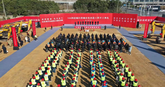 10點58分,鎮(zhèn)江市市委書記馬明龍用洪亮的聲音正式宣布:“346國道城區(qū)段城市化改造工程正式開工”!頓時,施工機(jī)械正式啟動,五彩繽紛的禮花開始綻放,歡快的音樂瞬間奏響,伴隨著所有參加人員的掌聲,全場一片沸騰,預(yù)示著這條全長約7.5公里,規(guī)劃紅線寬50米,項目批準(zhǔn)概算總投資約7.6億元的道路改造工程正式進(jìn)入施工階段!