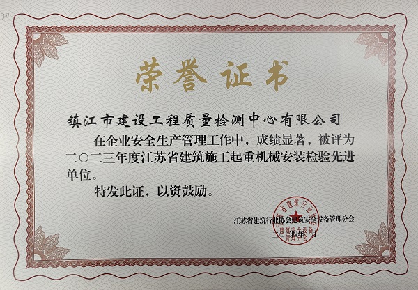 在剛剛過去的2023年度江蘇省建筑行業(yè)協(xié)會建筑安全管理分會組織的全省起重設備安裝檢測先進單位評比中,我中心以專業(yè)嚴謹?shù)臋z測能力、及時高效的服務質(zhì)量得到了客戶及省行業(yè)主管部門的一致認可和贊譽。我中心在全省近百家企業(yè)中脫穎而出榮獲“2023年江蘇省建筑施工起重機械檢驗先進單位”。這是省行業(yè)主管部門及協(xié)會對我中心檢驗檢測工作的充分肯定,我們將以此為契機進一步加強檢驗檢測的能力學習,提升自我的檢測能力水平,在來年的工作中以更嚴謹?shù)膽B(tài)度、更扎實的工作作風、更高效的服務質(zhì)量為保障鎮(zhèn)江市的建筑機械施工安全貢獻自己的一份力量!